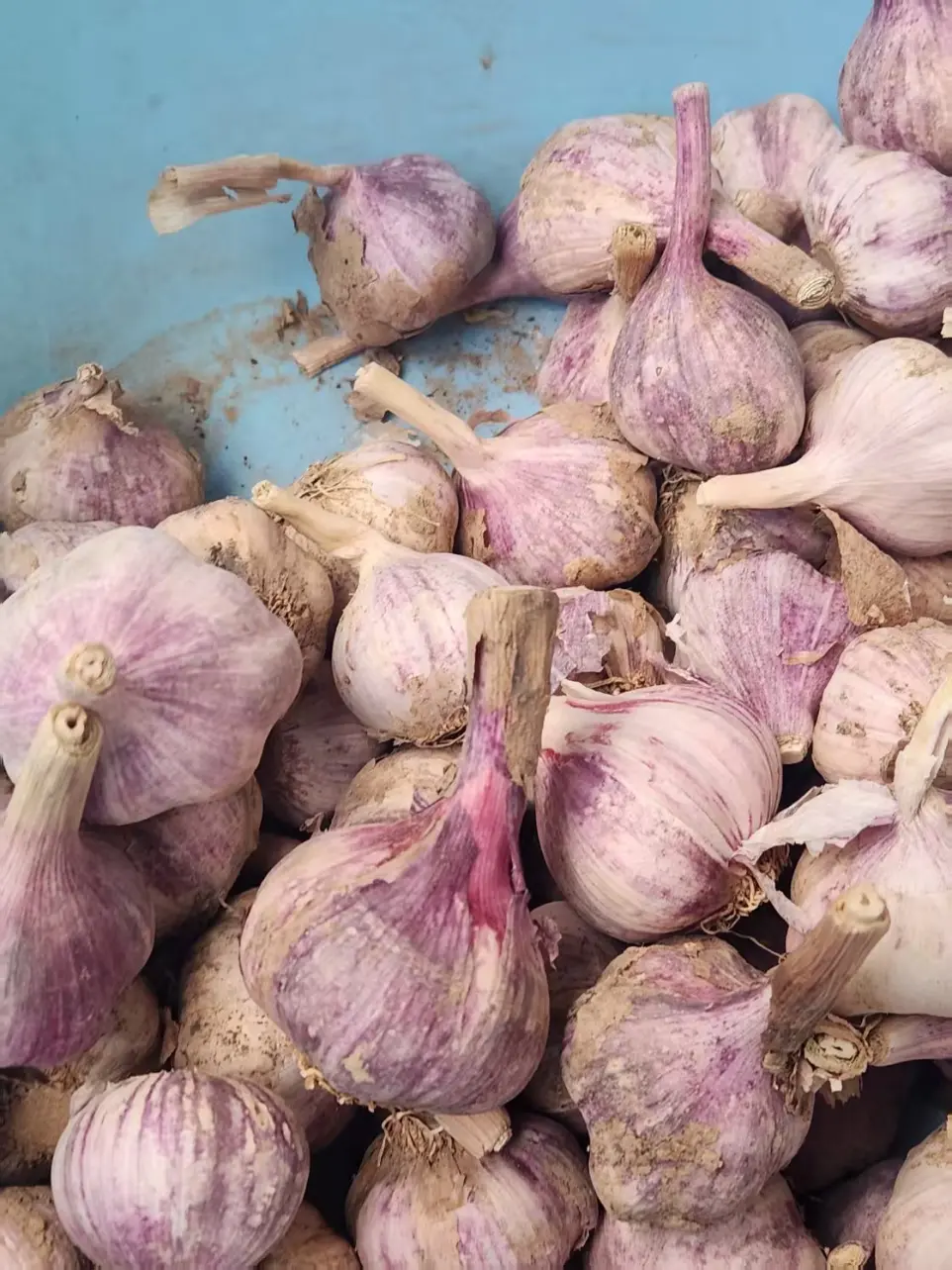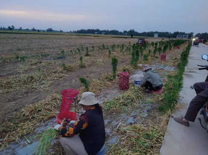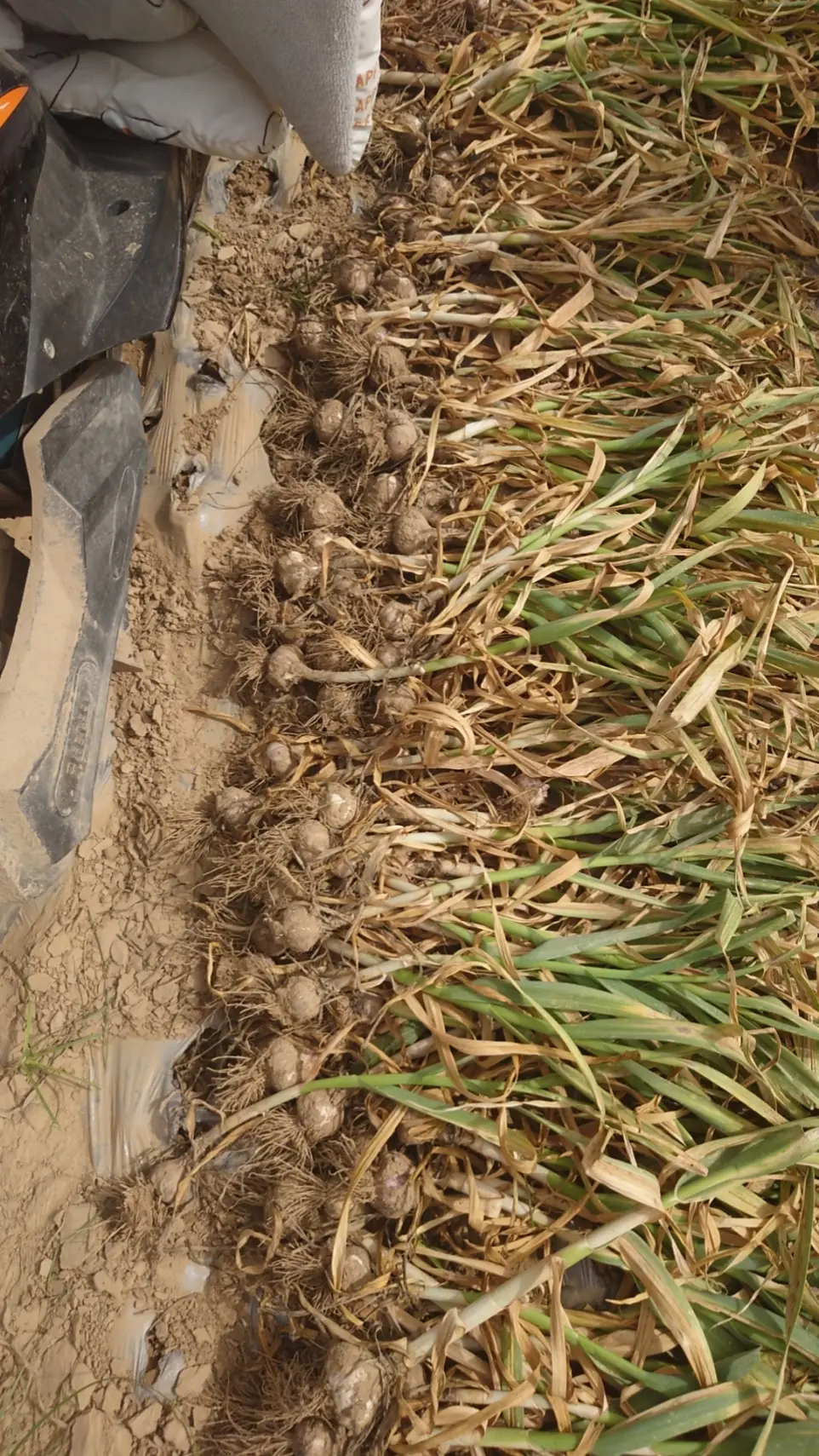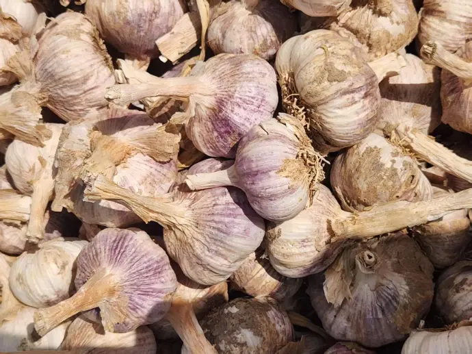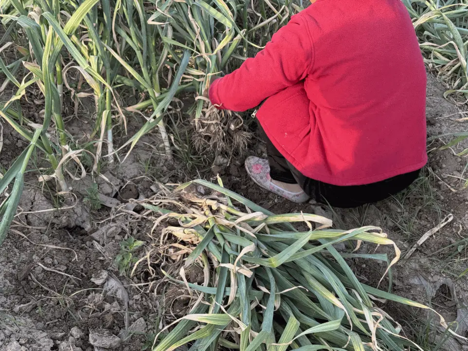 At this stage, garlic harvesting cannot be fully mechanised; immature machinery can cause a lot of bruising to the garlic, which can lead to sugary garlic when dried after bruising.